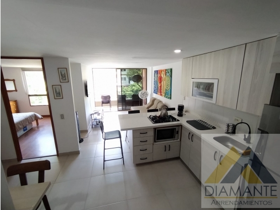 El apartamento cuenta con dos alcobas con closets en un sector muy apetecido por su ubicación geografica. El edificio cuenta con porteria 24 horas, piscina, solárium, adicional el apartamento cuenta con sala comedor, cocina integral, dos baños, balcon amplio, parqueadero privado, cuarto util, con facíl salida a las vias principales como la avenida 33, la ragional o avenida del rio. totalmente amoblado con servicios publicos de agua, luz, gas natural, tv y wifi. Asesor comercial Jefferson Alcaraz comunícate a la linea 301 536 6555