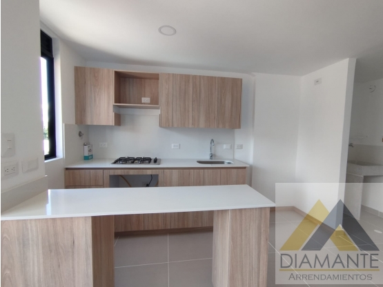 se renta hermoso a´partamento para estrenar con un area de 70m2 con una distribucion de sala comedor,cocina integral,zona ded ropas,baños social completo,2 habitaciones, un closet, un vestier y baño priavado,cuenta con balcon con ,parqueadero cubierto, vigilancia 24/7.
