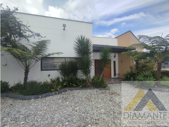 se renta hermosa casa campestre en la ceja con un area construida de 240m2 y un lote de 2500m2 con una distribucion de una amplia sala comedor,cocina integral abierta, zana de ropas, cuarto del servio con baño privado, despensa, cuenta con 4 habitaciones, cada una con baño privado y closet, cuenta con una amplia zona verde, vigilancia 24/7.